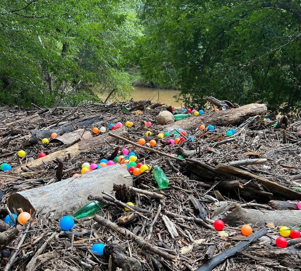 “One of the more unusual items of post-Chantal debris that turned up along the banks of the Eno was a scattering of thousands of colorful plastic balls. While my thoughts were haunted by the loss of life, property, and livelihoods left in Chantal’s wake when I first visited the river, they quickly turned to cleaning up what I could before the next storm washed these balls back into the river.