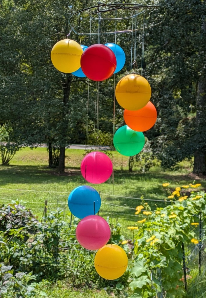 Put your finished ball in the bin and we’ll transform it into an ornament and put it on display on the patio.